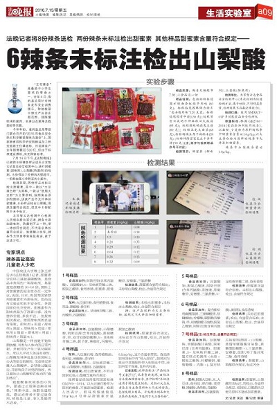 2016年7月14日12點(diǎn),北京智云達(dá)科技股份有限公司再次與法制晚報(bào)聯(lián)合在食品安全檢測(cè)消費(fèi)者體驗(yàn)中心進(jìn)行食品檢測(cè)實(shí)驗(yàn),并在樂嗨直播平臺(tái)進(jìn)行現(xiàn)場直播,二戰(zhàn)告捷。如今食品安全問題往往是一波未平一波又起,維護(hù)食品安全迫在眉睫。本期主要內(nèi)容是對(duì)不同種類辣條進(jìn)行甜蜜素和山梨酸鉀含量檢測(cè)。